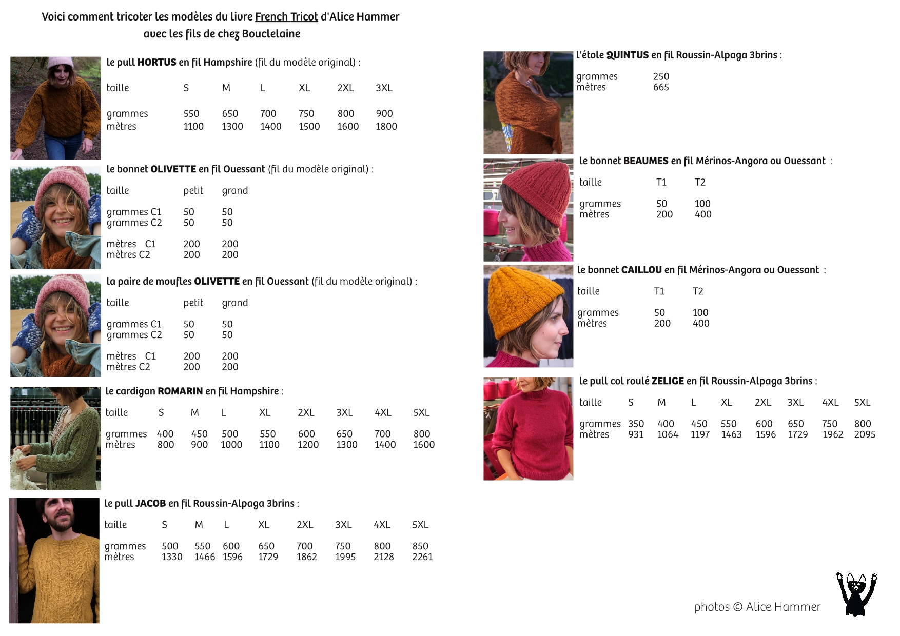 In order to offer you more and more project’s ideas, we made some calculations. So we know the quantities to knit the book’s pattern with our yarn (when it was possible. In the photo gallery, you will find the explaination.