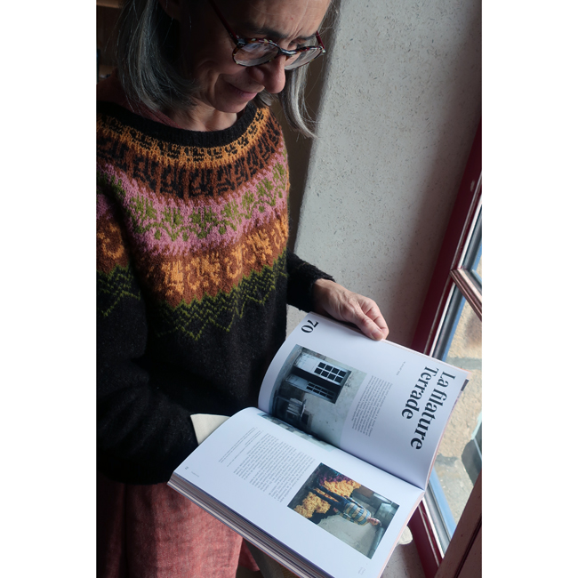 « French Tricot n’est pas qu’un livre de patrons : je suis partie à la rencontre d’onze acteurs de la filière laine en France pour qu’ils nous parlent de leur travail et répondent à certaines de mes questions, de vos questions surtout. Vous êtes de plus en plus curieux et préoccupés par l’origine du fil que vos consommez. Je le vois au travers de vos questions et je me suis rendue compte qu’étant tout à fait au bout de la chaîne « tricot », j’étais quasiment ignorante en ce qui concerne les tenants et les aboutissants des différentes étapes qui mènent à la pelote que nous trouvons en mercerie. »