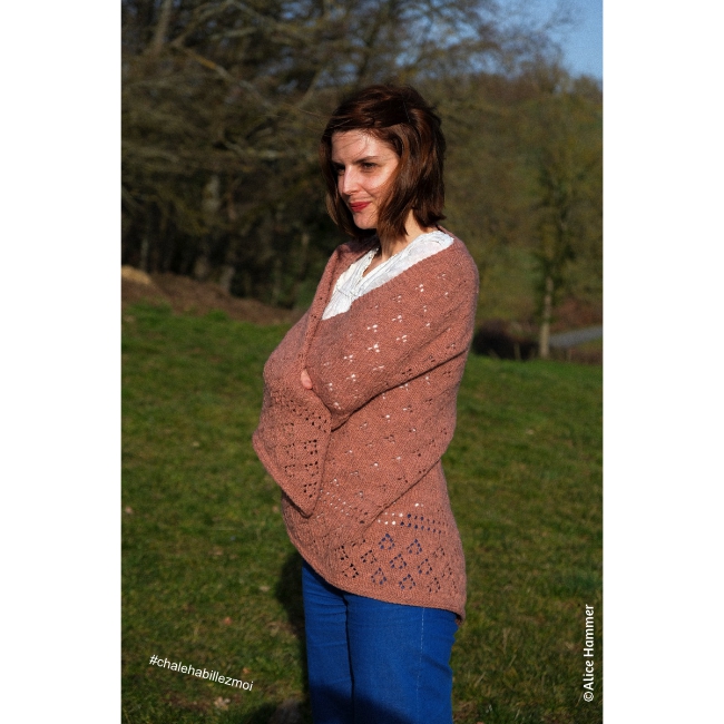 Pour tricoter son modèle original, Alice a utilisé notre fil Roussin-Alpaga DK couleur églantine.