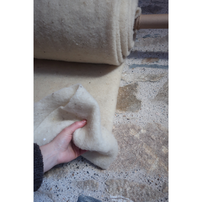Cette ouate est le fruit d’un long processus de valorisation intégrale des toisons de moutons élevés sur l’île d’Ouessant que nous avons réalisé. En effet, ici ce sont les fibres moins fines mais toujours de belle qualité qui peuvent être utilisées sans être au contact direct de la peau.