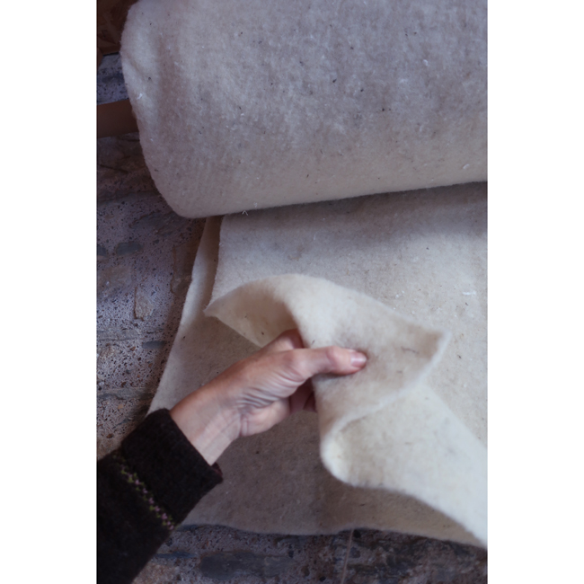 This quilting stuf is made from a long sorting process of Ouessant island’s sheeps’ wool. Here are the biger fibers that are still very beautiful and can be used inside a fabric, not directly in contact with skin.