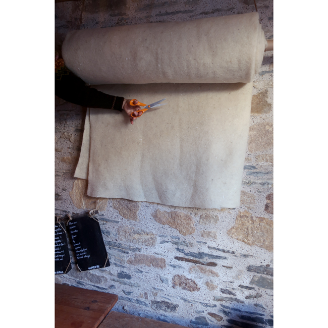 Needle pre-felted wool of white sheeps raised on Brittany.