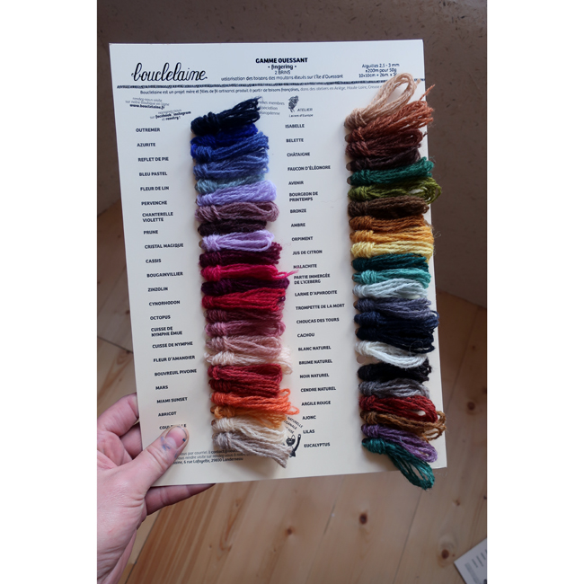 Here is Bouclelaine’s • Ouessant • yarn’s color card. Working with sheeps raised on the famous Ouessant island. Most western French island.