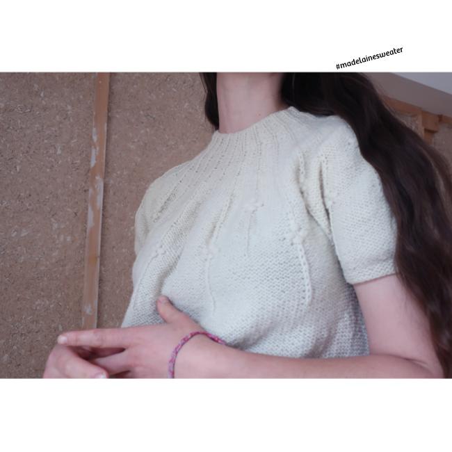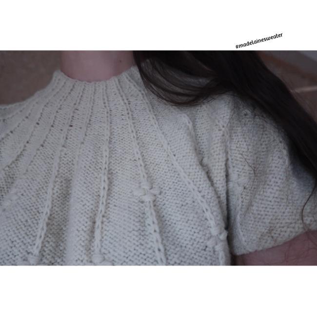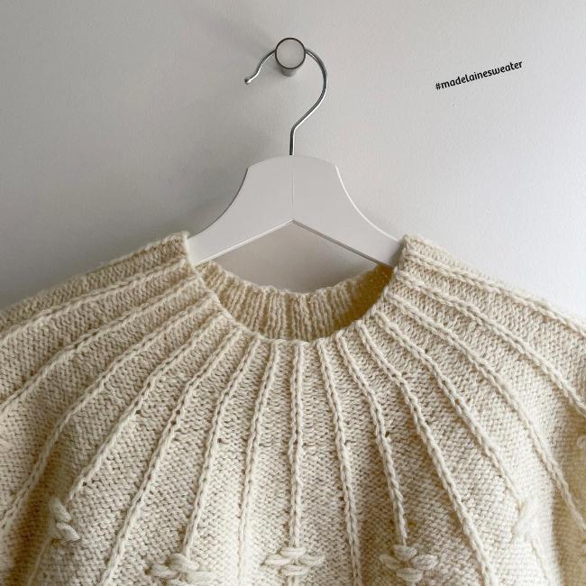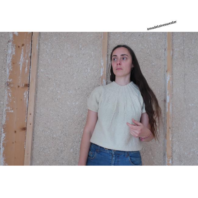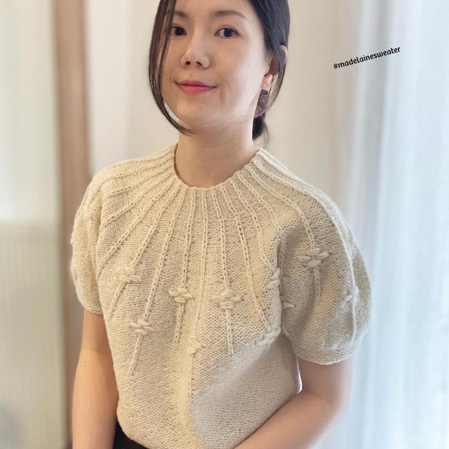 Madeleine Sweater is knitted top-down and seamless. The body and sleeves are knitted in the round. This pattern includes both a short and long sleeved version of Madeleine Sweater.