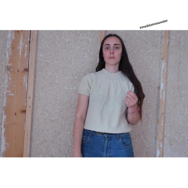 Le pull Madeleine est tricoté de haut en bas sans couture. Le corps et les manches sont tricotées en rond. Ce patron inclu une version manches longues et une version manches courtes.